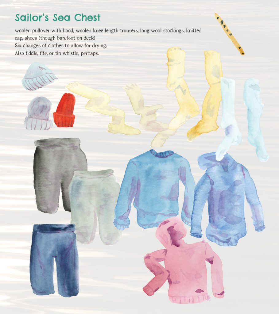 Sailors of the 1600s would get one chest to bring along. I didn’t draw the shoes because they weren’t really used on the ship. They were more for running ashore and being cooth.